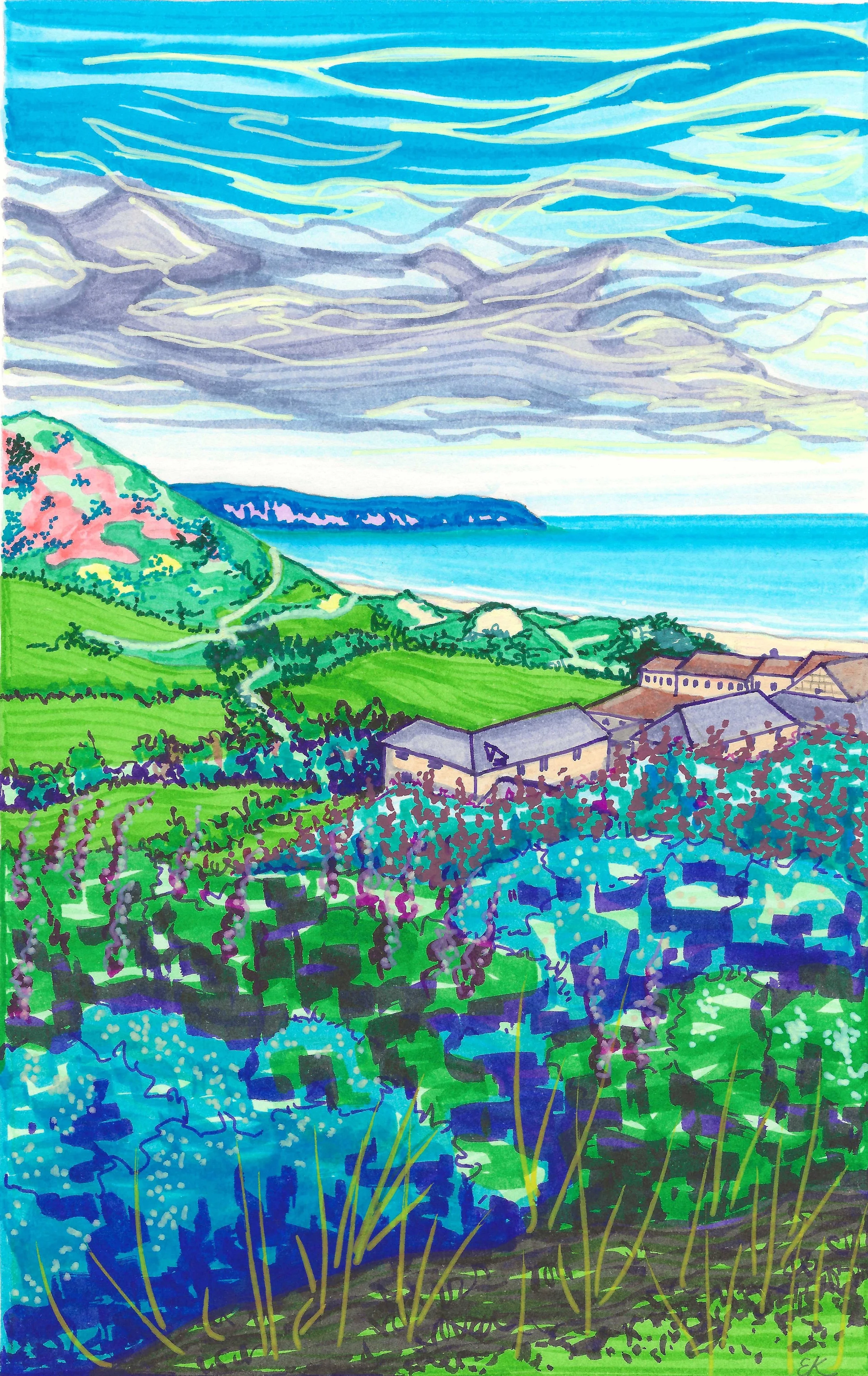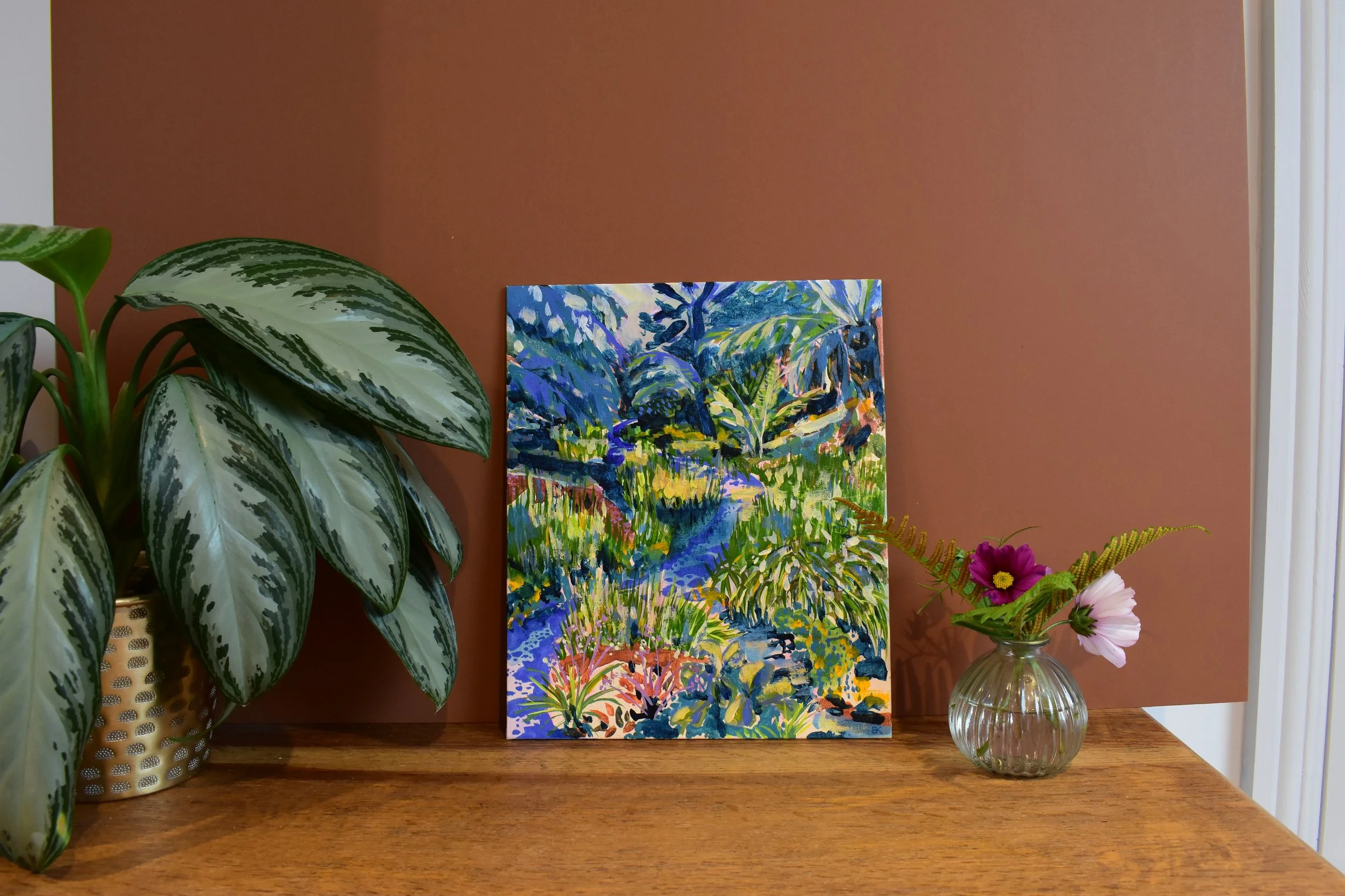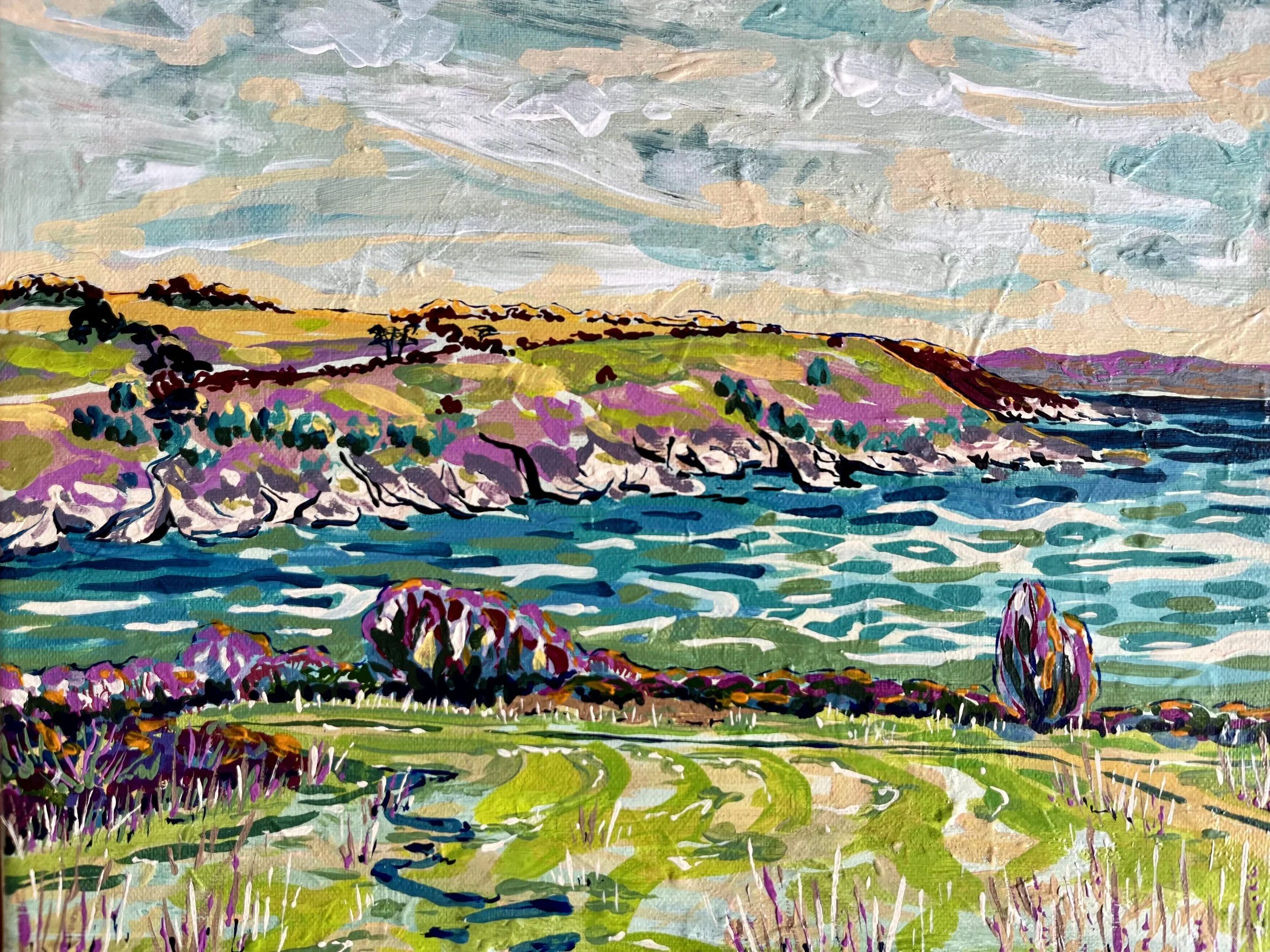 Below is a visual record of my artwork, documenting its varied and adaptive styles, mediums and scales. Threaded throughout is a sense of wonder and excitement found in the natural world, experiencing the elements and capturing fleeting moments in time. Playful colour palettes and a freedom of movement and form reflect the rhythm and energy of the landscape. My paintings are not static snapshots but evolving impressions—immersive responses to shifting light, sound, and atmosphere. Each work aims to evoke the sensory richness of being present in nature: the rustle of wind through leaves, the glimmer of light on water, the distant call of birds—moments that are felt as much as they are seen.
